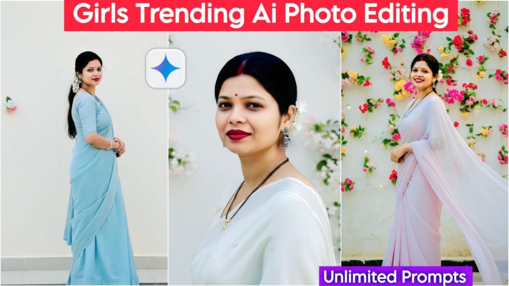 Many people are using these Ai photo editing prompts to edit their photos. These prompts are trading prompts which are for Google Gemini. You cannot use it in ChatGPT. If you use it, it will not be like it would be in Google Gemini but it will be possible. It is specially made for girls who are standing alone against a wall in a plain sari with a small flower on their forehead.