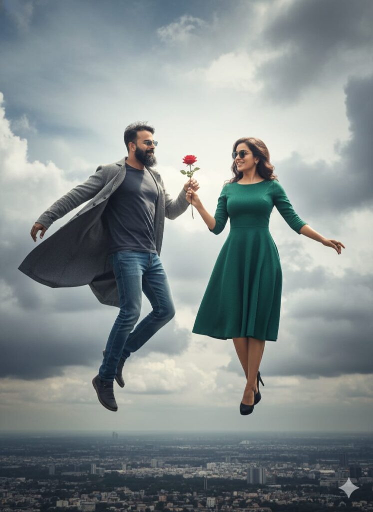 Viral AI Photo Editing Prompts: Create Sky Couple Images 8K Photos in Seconds
